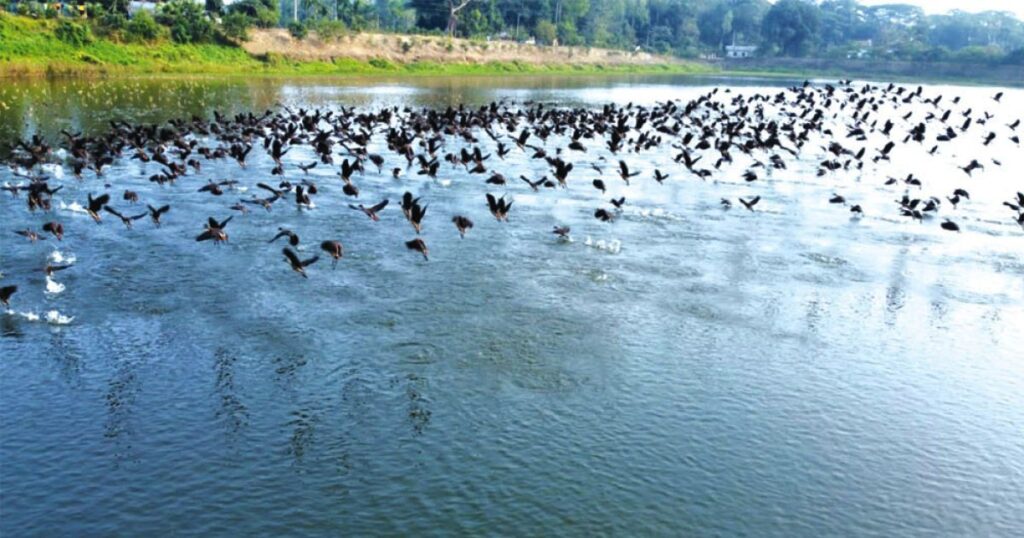 নোয়াপাড়ার জালোয়ার দিঘি এলাকার বাসিন্দা জাহাঙ্গীর আলম বলেন, প্রতিদিন সকাল ১১ থেকে ১২টার মধ্যে এই দিঘিতে হাজার হাজার পাখি অবস্থান করে। ওড়াউড়ি আর পাখির ডাকে পুরো এলাকা মুখরিত হয়ে ওঠে। অনেকেই ঢিল ছুঁড়ে পাখির নাচন দেখতে চান। সন্ধ্যার দিকে এসব পাখি অন্য কোনো স্থানে চলে যায়।