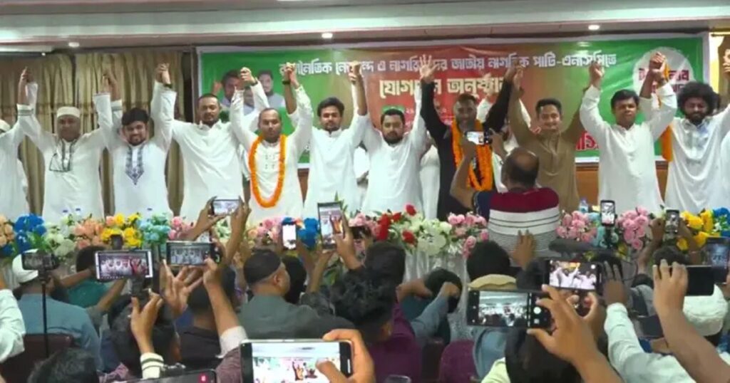 রাজধানীর ডিপ্লোমা ইঞ্জিনিয়ার্স ইনস্টিটিউট মিলনায়তনে শুক্রবার (২৪ এপ্রিল) বিকেলে অনুষ্ঠিত এক বিশেষ সমাবেশে জাতীয় নাগরিক পার্টি (এনসিপি) formallyভাবে গ্রহণ করেছে বিএনপির বহিষ্কৃত নেতা ইসহাক সরকার, সামাজিক অ্যাকটিভিস্ট মহিউদ্দিন রনি ও কনটেন্ট ক্রিয়েটর নুরুজ্জামান কাফিকে।