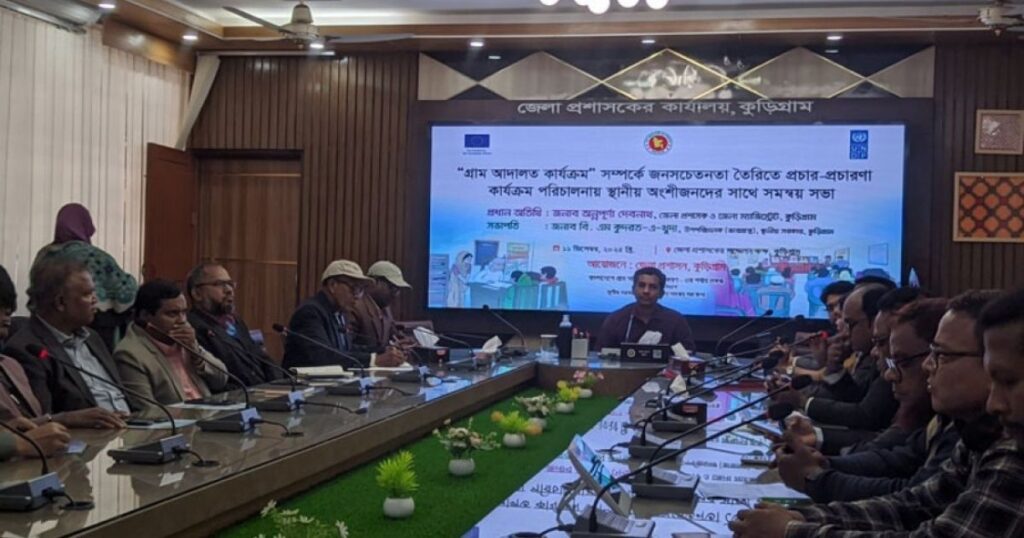 সাধারণ গ্রামবাসীরা ন্যায্য বিচার পাওয়ার জন্য বর্তমানে গ্রাম আদালত বা ভিলেজ কোর্ট একটি গুরুত্বপূর্ণ মাধ্যম হিসেবে কাজ করছে। এই ব্যবস্থা গ্রামীণ মানুষের মধ্যে যে বিরোধের সমাধান সহজ এবং দ্রুত হয়, তা ইতিবাচকভাবে পালন করছে ভূমিকা। বিশেষ করে কুড়িগ্রামের প্রান্তিক জনগোষ্ঠীর মধ্যে এই আইনগত প্রতিষ্ঠানটি জনপ্রিয় হয়ে উঠছে। মাত্র এক বছরের মধ্যে জেলাজুড়ে ২৮০০টির বেশি মামলা এই আদালতের মাধ্যমে নিষ্পত্তি হয়েছে, যেখানে বিচারপ্রার্থী নারীদের সংখ্যা প্রায় ৪০ শতাংশ। এই তথ্য বৃহস্পতিবার কুড়িগ্রাম জেলা প্রশাসকের কার্যালয়ে আয়োজিত অংশীজনদের সভায় জানানো হয়।