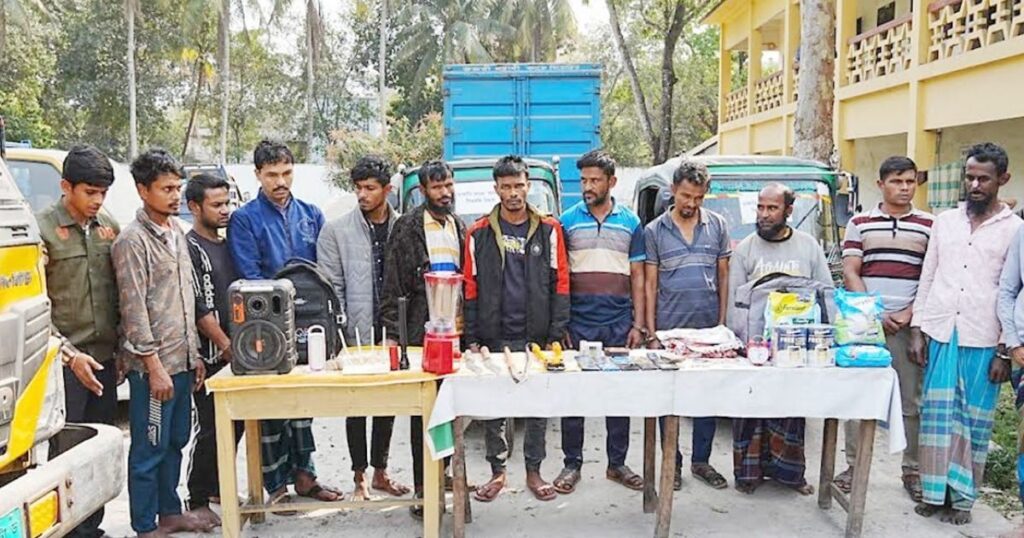গ্রেপ্তারদের মধ্যে রয়েছেন — জীবন মিয়া, দেলোয়ার হোসেন, আনোয়ার হোসেন, নাসির, আবু তাহের, জামাল কুদ্দুস, ওবাইদুল, হানিফ, সৌরভ হোসেন, জহির, মকবুল হোসেন ও কামাল। পুলিশ জানায়, গ্রেপ্তারদের বিরুদ্ধে কুমিল্লা, ব্রাহ্মণবাড়িয়া, চাঁদপুর, ফেনী, ঢাকা ও চট্টগ্রামের বিভিন্ন থানায় একাধিক মামলা রয়েছে।