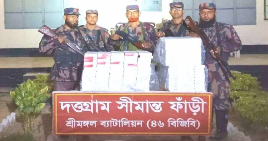 মৌলভীবাজারের কুলাউড়ায় চোরাচালানবিরোধী বিশেষ অভিযান চালিয়ে অবৈধভাবে আনা ৩ লাখ ২ হাজার টাকার ভারতীয় সিগারেট উদ্ধার করেছে বর্ডার গার্ড বাংলাদেশ (বিজিবি)। ঘটনাটি ঘটে মঙ্গলবার (২ ডিসেম্বর) রাতে, যখন সীমান্তবর্তী দত্তগ্রাম এলাকায় শ্রীমঙ্গল ব্যাটেলিয়নের একটি টহলদল অভিযান চালায়। বাইরের সূত্রে প্রাপ্ত গোপন সংবাদের ভিত্তিতে এই অভিযান পরিচালিত হয়। জেনেছেন, এ সময় মালিকবিহীনভাবে ফেলে রাখা অবস্থায় দ্রুত পাঠানোর জন্য প্রস্তুত অবস্থায় নানা ধরনের চোরাচালান করা ভারতীয় সিগারেট উদ্ধার করা হয়। বিজিবি জানিয়েছেন, অপরাধীদের মাধ্যমে এই সমস্ত সিগারেট সীমান্তের কাছাকাছি থেকে কৌশলে আনা হয়েছিল, তবে চলাকালীন সময়ে ধরা পড়ে গেলে উড়িয়ে দেওয়া হয়। এ ঘটনায় আরও তদন্ত ও আইনানুযায়ী ব্যবস্থা নেওয়া হচ্ছে।