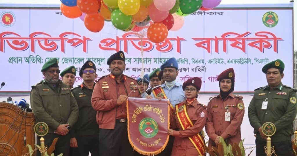 অপরদিকে, বাহিনী প্রধান বলেন, ‘‘আমাদের সবাইকে যুগে যুগে দেশের জন্য সাহস, শৃঙ্খলা ও দেশপ্রেম নিয়ে কাজ করতে হবে। তাই ভিডিপিকে আরও শক্তিশালী, প্রশিক্ষিত ও সুশৃঙ্খল বাহিনী হিসেবে গড়ে তুলতে সবাইকে একত্রে এগিয়ে আসার আহ্বান জানাই। এতে ভবিষ্যতের বাংলাদেশ আরও শান্তিপূর্ণ, নিরাপদ ও উন্নত হবে।’’