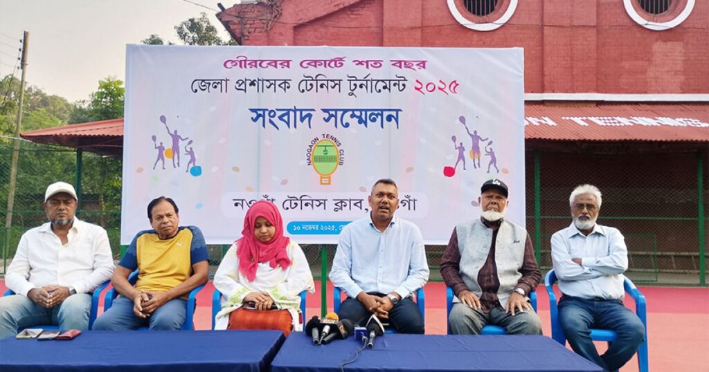 নওগাঁয় শতবর্ষে পৌঁছানো হয়ে গেল টেনিস ক্লাবের ঐতিহাসিক যাত্রা। এই মহান উপলক্ষে ও নওগাঁ টেনিস ক্লাবের শতবর্ষ উদযাপন উপলক্ষে শুরু হতে যাচ্ছে একটি বিশেষ টেনিস টুর্নামেন্ট—জেলা প্রশাসকের উদ্যোগে আয়োজিত ‘নওগাঁ টেনিস টুর্নামেন্ট ২০২৫’। এই খবর সোমবার বিকেলে নওগাঁ টেনিস ক্লাবের প্রাঙ্গণে এক সংবাদ সম্মেলনের মাধ্যমে সংবাদমাধ্যমের সামনে তুলে ধরা হয়।