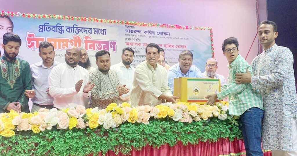 নরসিংদীর বিভিন্ন এলাকার দেড়শত প্রতিবন্ধী ব্যক্তি ও তাদের পরিবারের মাঝে ঈদসামগ্রী বিতরণ করেছে জিয়াউর রহমান ফাউন্ডেশন। সোমবার (২ মার্চ) দুপুরে নরসিংদী জেলা শিশু একাডেমি মিলনায়তনে এই কার্যক্রম অনুষ্ঠিত হয়।