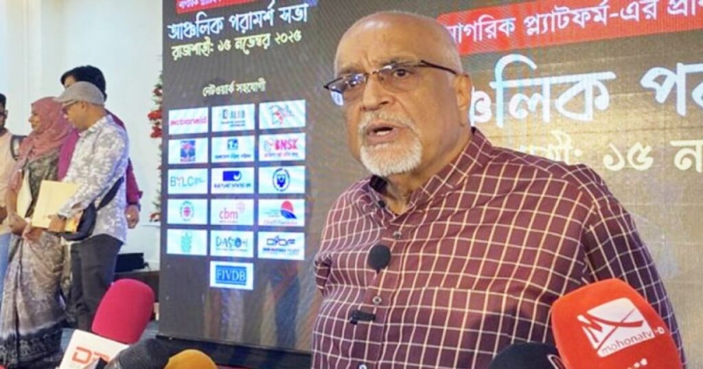 অর্থনীতিবিদ ও গণনীতি বিশ্লেষক ড. দেবপ্রিয় ভট্টাচার্য বলেছেন, নির্বাচন এখন ক্রমশ একটি অবধারিত ঘটনা হিসেবে পরিণত হচ্ছে। গতকাল শনিবার রাজশাহীতে ‘নাগরিক প্ল্যাটফর্মের প্রাক-নির্বাচনি উদ্যোগ’ শীর্ষক আঞ্চলিক পরামর্শ সভায় অংশ নিয়ে তিনি এসব কথা বলেন। সভাটির আয়োজন করা হয় পবার ব্র্যাক লার্নিং সেন্টারের সম্মেলন কক্ষে, যেখানে সকাল সাড়ে ১১টা থেকে শুরু করে বিকাল আড়াইটা পর্যন্ত নানা বিষয় নিয়ে আলোচনা হয়। সভার শেষে সাংবাদিকদের সঙ্গে আলাপকালে ড. দেবপ্রিয় ভট্টাচার্য বলেন, নির্বাচন এখন ধাপে ধাপে এক অপরিহার্য ঘটনায় রূপান্তরিত হচ্ছে। তিনি আরও বলেন, সাধারণভাবে প্রত্যেকেই আশা করছেন, নির্বাচনী প্রক্রিয়া সুন্দরভাবে সুষ্ঠু ও অংশগ্রহণমূলকভাবে সম্পন্ন হবে এবং ফলাফল সেই দেশের ভবিষ্যত উন্নয়নে ভিত্তি তৈরি করবে। সভায় উপস্থিত ছিলেন রাজশাহী অঞ্চলের সাধারণ নাগরিক, শিক্ষক-শিক্ষার্থী, গবেষক, স্থানীয় রাজনৈতিক দলের প্রতিনিধিরা, আইনজীবী, পিছিয়ে পড়া জনগোষ্ঠীর প্রতিনিধি, উদ্যোক্তা এবং ব্যবসায়ীরাও। তারা সংস্কার, সুশাসন, নিরাপত্তা, প্রার্থীদের নির্বাচন, কর্মসংস্থান, শিক্ষা реформ, স্বাস্থ্য সেবা, আঞ্চলিক বানিজ্য প্রতিষ্ঠা ইত্যাদি বিষয় নিয়ে মতামত ব্যক্ত করেন। এছাড়া পর্যায়ক্রমে আগামী সংসদ নির্বাচনে প্রার্থীদের বিষয়ে ও সরকারের প্রত্যাশার বিষয়গুলো তুলে ধরা হয়। সভা শেষে ড. দেবপ্রিয় ভট্টাচার্য বলেন, অংশগ্রহণকারীরা চান এমন একটি নির্বাচন যেখানে প্রকৃত জনপ্রতিনিধিরা নির্বাচিত হবেন। এসময় ব্যয় নিয়ন্ত্রণ, সোশ্যাল মিডিয়া ও সামাজিক মাধ্যমের অপব্যবহার রোধ, এবং যোগ্য প্রার্থী নির্বাচন বিষয়ে গুরুত্বারোপ করেন। তিনি আরও বলেন, যদি নির্বাচনের খরচ কমানো না যায়, তবে দুর্নীতির মান কমানো কঠিন হবে। জনগণের প্রতিনিধিরা প্রত্যেক বছর তাদের দায়িত্ব পালনের হিসাব দিতে হবে বলেও উল্লেখ করেন। রাজশাহী সংক্রান্ত গুরুত্বপূর্ণ চারটি বিষয় উঠে আসে এই আলোচনা থেকে। প্রথমত, রাজশাহীতে মরুকরণ বা জলবায়ু পরিবর্তনের প্রভাব দেখা যাচ্ছে। দ্বিতীয়ত, উত্তরাঞ্চলে পদ্মা ও তিস্তার পানি সরবরাহের সমস্যা। তৃতীয়ত, জ্বালানি সংকট, বিশেষ করে গ্যাসের অভাব। আরও এক গুরুত্বপূর্ণ বিষয় হলো যোগাযোগ ব্যবস্থার দুর্বলতা। দেশের অর্থনৈতিক উন্নয়ন ও শিল্পায়নকে সামনে রেখে বিভিন্ন অংশের গুরুত্বারোপ হয়। স্বাস্থ্য, মানসম্পন্ন শিক্ষা, দরিদ্র মানুষের সামাজিক সুরক্ষা, এবং সর্বশেষ নিরাপত্তার বিষয়গুলোও আলোচিত হয়। নিরাপত্তা নিয়ে আলোচনা বিশেষ গুরুত্ব পায়, যেখানে শুধু অর্থনৈতিক নিরাপত্তা নয়, সামাজিক, সাংস্কৃতিক এবং ব্যবসায়িক নিরাপত্তার বিষয়গুলোও গুরুত্ব সহকারে বিবেচনা করা হয়।