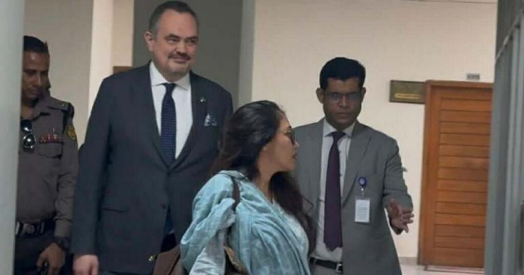 বিশিষ্ট এক গুরুত্বপূর্ণ বৈঠকে মিলিত হয়েছেন বাংলাদেশের প্রধান নির্বাচন কমিশনার (সিইসি) এ এম এম নাসির উদ্দিন ও ঢাকা দাপ্তরিক মার্কিন রাষ্ট্রদূত ব্রেন্ট ক্রিস্টেনসেন। এই বৈঠকটি অনুষ্ঠিত হয়েছে আজ বুধবার (২৮ জানুয়ারি) দুপুর ১২টায় রাজধানীর আগারগাঁওয়ে নির্বাচন কমিশন কার্যালয়ে। এটি অত্যন্ত গুরুত্বপূর্ণ কারণ আগামী ১২ ফেব্রুয়ারি অনুষ্ঠিতব্য ত্রয়োদশ জাতীয় সংসদ নির্বাচন ও গণভোটের শুধু দুই সপ্তাহ আগে এই উচ্চপর্যায়ের আলোচনা অনুষ্ঠিত হয়, যা নির্বাচনী প্রক্রিয়া ও আন্তর্জাতিক দৃষ্টিকোণ থেকে বিশেষ মনোযোগের কেন্দ্রে এসেছে।
