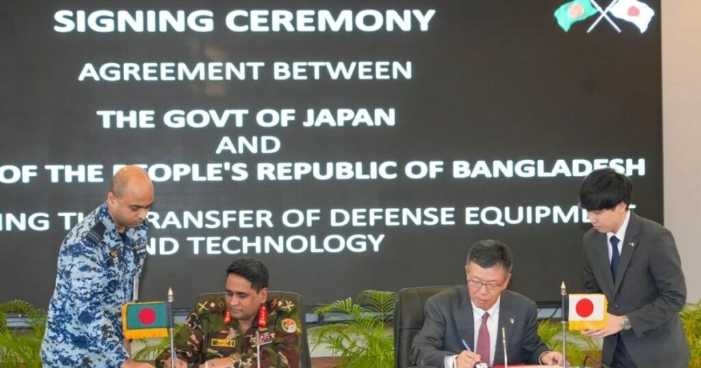 বাংলাদেশ ও জাপান একটি দ্বিপক্ষীয় চুক্তিতে সাক্ষর করেছে, যার মাধ্যমে তারা এটি নিশ্চিত করেছে যে, প্রতিরক্ষা সরঞ্জাম ও প্রযুক্তি হস্তান্তর সংক্রান্ত কাজগুলো নিয়মিত ও কার্যকরভাবে চলবে। মঙ্গলবার (৩ ফেব্রুয়ারি) ঢাকায় এই চুক্তি স্বাক্ষর অনুষ্ঠিত হয়, যেখানে বাংলাদেশ সরকারের পক্ষে সশস্ত্র বাহিনী বিভাগের প্রিন্সিপাল স্টাফ অফিসার লেফটেন্যান্ট জেনারেল এস এম কামরুল হাসান এবং জাপানের পক্ষে দেশটির রাষ্ট্রদূত সাইদা শিনিচি চুক্তিতে স্বাক্ষর করেন।