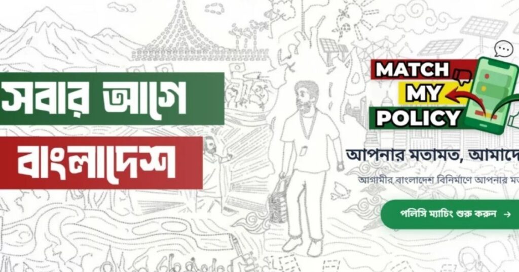 ২০২৪ সালের julho মাসে গণ-অভ্যুত্থান পরবর্তী নতুন বাংলাদেশের স্বপ্নের নীলনকশা বাস্তবায়নে বাংলাদেশ জাতীয়তাবাদী দল (বিএনপি) একটি অত্যন্ত গুরুত্বপূর্ণ উদ্যোগ গ্রহণ করেছে। দলের চেয়ারম্যান তারেক রহমানের নির্দেশনায় রাজনৈতিক অংশগ্রহণ এবং পলিসি ভিত্তিক আলোচনা আরও বেশি অংশগ্রহণমূলক ও তরুণপ্রজন্মের সাথে সংযুক্ত করার জন্য চালু হয়েছে একটি নতুন ইন্টারেক্টিভ ডিজিটাল প্ল্যাটফর্ম—‘ম্যাচ মাই পলিসি’। গত শনিবার (১০ জানুয়ারি) সন্ধ্যায় তারেক রহমানের ভেরিফায়েড ফেসবুক পেজে একটি ভিডিও বার্তার মাধ্যমে এই ওয়েব অ্যাপের আনুষ্ঠানিক উদ্বোধন করা হয়। এটি বাংলাদেশের রাজনীতিতে এর আগে কখনো এরকম নমুনা দেখা যায়নি, যেখানে একটি রাজনৈতিক দল জনমত যাচাই ও নীতিনির্ধারণে আধুনিক প্রযুক্তি ব্যবহারের মাধ্যমে জনগণের সরাসরি অংশগ্রহণ নিশ্চিত করছে। এই নব উদ্ভাবন তরুণ প্রজন্মের চিন্তাভাবনা ও মতামতকে গুরুত্ব দিয়ে, গণতান্ত্রিক প্রক্রিয়াকে আরও শক্তিশালী করবে বলে আশা প্রকাশ করা হচ্ছে।