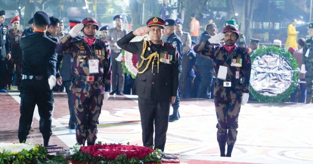 বিজিবি মহাপরিচালক মেজর জেনারেল মোহাম্মদ আশরাফুজ্জামান সিদ্দিকী ১৯৫২ সালের ভাষা আন্দোলনের বীর শহীদদের প্রতি গভীর শ্রদ্ধা জানিয়ে পুষ্পস্তবক অর্পণ করেছেন। শুক্রবার (২০ ফেব্রুয়ারি) ভোরের প্রথম প্রহরে তিনি ঢাকার কেন্দ্রীয় শহীদ মিনারে উপস্থিত হয়ে মহান শহীদ দিবস ও আন্তর্জাতিক মাতৃভাষা দিবসের উদ্বোধনী অনুষ্ঠানে এই শ্রদ্ধা নিবেদন করেন। এই দিনটি স্মরণ করে তারা ১৯৫২ সালে তার রক্তের বিনিময়ে জীবনের আশ্রয়ী ভাষা আন্দোলনের শহীদদের কথা। পুষ্পস্তবক অর্পণের সময় বিজিবির উচ্চপদস্থ কর্মকর্তারা পাশাপাশি অন্যান্য সৈনিকরা উপস্থিত ছিলেন। এর আগে, রাষ্ট্রপতি মো. সাহাবুদ্দিন এবং প্রধানমন্ত্রী তারেক রহমানও গভীর শ্রদ্ধা নিবেদন করেন ভাষা শহীদদের প্রতি। এই দিনটি শহীদদের স্মরণে আনো সর্বস্তরের মানুষ, যা আমাদের মাতৃভাষার প্রতি আমাদের গভীর ভালবাসা ও সম্মানের পরিচয়।