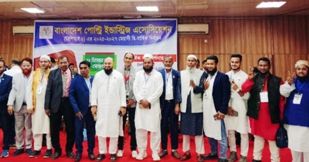 বাংলাদেশ পোলট্রি ইন্ডাস্ট্রিজ অ্যাসোসিয়েশনের (বিপিআইএ) ২০২৫-২০২৭ মেয়াদের দ্বিবার্ষিক নির্বাচনে পোলট্রি পেশাজীবীরা ব্যাপক উৎসাহের মধ্য দিয়েই ভোট দিয়েছে। নির্বাচনের ফলাফলে ৫৩৫ ভোট পেয়ে সংগঠনের নতুন সভাপতি হিসেবে নির্বাচিত হয়েছেন আস্থা ফিড ইন্ডাস্ট্রিজ লিমিটেডের চেয়ারম্যান মোশারফ হোসাইন চৌধুরী। অন্যদিকে, মহাসচিব পদে ৫০৭ ভোট প্রাপ্ত মো. সাফির রহমান (কোয়ালিটি ব্রিডার্স লিমিটেডের পরিচালক) নির্বাচিত হন।