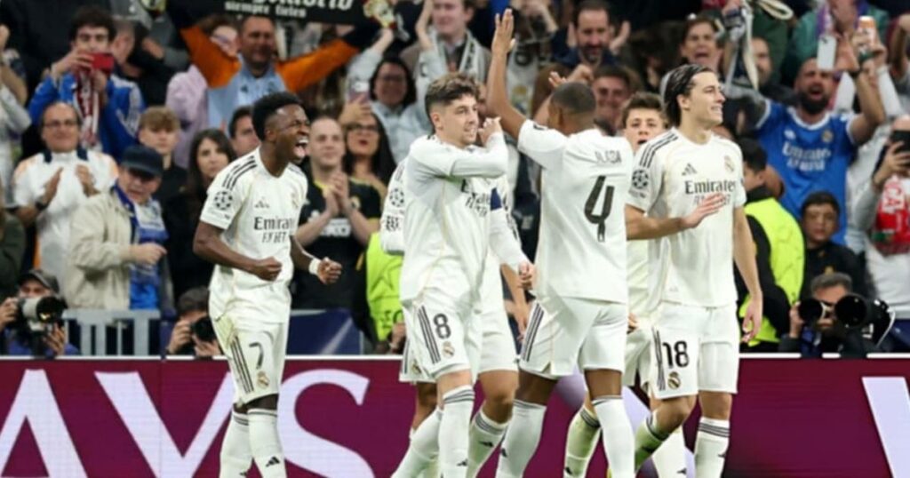 ইউয়েফা চ্যাম্পিয়নস লিগের প্লে-অফ পর্বের দ্বিতীয় লেগের ম্যাচে পর্তুগিজ ক্লাব বেনফিকাকে ২-১ গোলে হারিয়ে শেষ আঠেরো দলের পূর্বনির্ধারিত স্থান নিশ্চিত করেছে রিয়াল মাদ্রিদ। এই রোমাঞ্চকর ম্যাচটি সান্তিয়াগো বার্নাব্যুতে অনুষ্ঠিত হয়, যেখানে স্প্যানিশ জায়ান্টরা দুই লেগের মোট স্কোর ৩-১ হয়ে উঠল। প্রথম লেগে তারা বেনফিকার মাঠে ১-০ গোলে জয় লাভ করেছিল। ঘরের মাঠে ড্র করলেই চলত রিয়ালের জন্য, কিন্তু তারা আক্রমণাত্মক ফুটবল খেলে অবশেষে জয় তুলে নিয়েছে। এই জয়ের ফলে তারা নকআউট পর্বের জন্য চূড়ান্ত জায়গা করে নিয়েছে।
