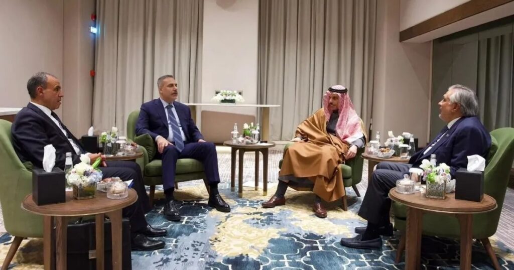 মধ্যপ্রাচ্যের তীব্র উত্তেজনার মাঝে আঞ্চলিক নিরাপত্তা জোট গঠনের সম্ভাব্য পথ খুঁজতে তুরস্ক, সৌদি আরব, মিসর ও পাকিস্তানকে নিয়ে গুরুত্বপূর্ণ আলোচনা অনুষ্ঠিত হয়েছে। বৃহস্পতিবার রিয়াদের ইসলামিক দেশগুলোর সম্মেলনের সাইডলাইনে চার দেশের পররাষ্ট্রমন্ত্রীরা এ বৈঠকে বসেন এবং আঞ্চলিক সহযোগিতার কাঠামো নিয়ে মতবিনিময় করেন।