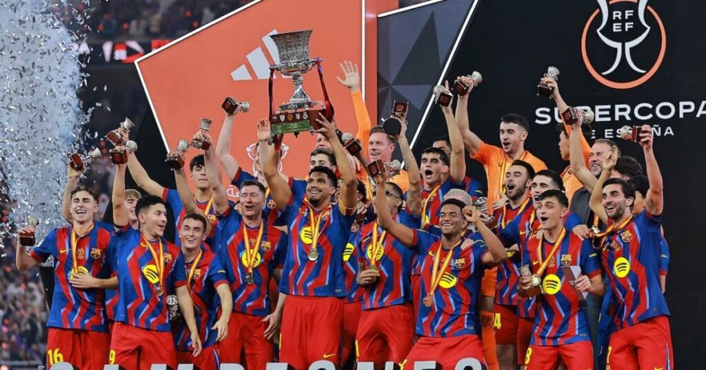 সৌদি আরবের জেদ্দায় কিং আব্দুল্লাহ স্পোর্টস সিটিজ্যামে অনুষ্ঠিত এক অত্যন্ত রোমাঞ্চকর ‘এল ক্ল্যাসিকো’ ফাইনালে কিছুতেই অপেক্ষাকৃত দুর্বল রিয়াল মাদ্রিদকে হারিয়ে স্প্যানিশ সুপার কাপের শিরোপা জয় করে নিয়েছে বার্সেলোনা। এই জয়ে বার্সা দল গত অক্টোবরের লা লিগা ম্যাচে রিয়ালের কাছে হারের প্রতিশোধ নিলো। পাশাপাশি, ২০১১ সাল থেকে অভাবনীয় এই কীর্তি পালন করে তারা টানা দ্বিতীয় বছর এই টুর্নামেন্টের শিরোপা ধরে রাখতে সক্ষম হলো, যা কাতালান ক্লাবের জন্য এক অনন্য কীর্তি। ম্যাচ শুরু থেকেই দুই দল রক্তক্ষয়ী লড়াই করে গেলেও প্রথমার্ধের নাটকীয়তা ছিল গোটা ম্যাচের কেন্দ্রবিন্দু। এই অর্ধেকের মধ্যে মোট পাঁচটি গোল হলো, যার মধ্যে তিনটি গোলই হয়েছে নির্ধারিত সময়ের পরের ইনজুরি টাইমে, যা ফুটবল প্রেমীদের মনে গভীর ছাপ ফেলেছে।