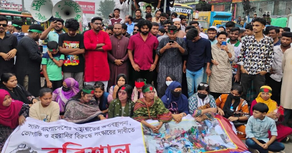 বরিশাল শের-ই-বাংলা মেডিকেল কলেজ হাসপাতালের (শেবাচিম) চিকিৎসা সেবা আধুনিকায়ন এবং স্বাস্থ্যখাতের সিন্ডিকেট ভেঙে দেওয়ার দাবিতে বৈষম্যবিরোধী ছাত্র আন্দোলনের নেতাকর্মীরা আবারও মহাসড়ক অবরোধ করেছেন।
