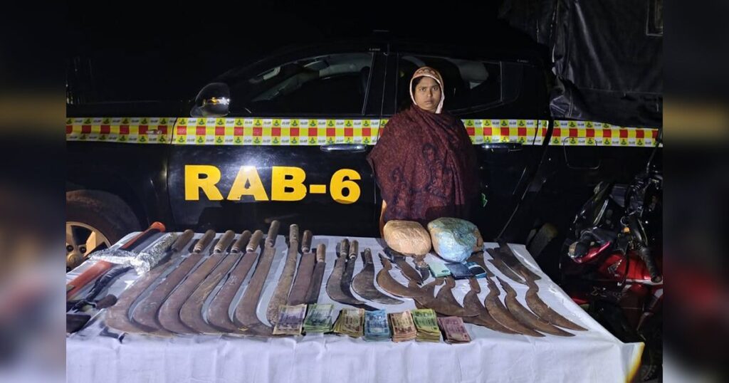 ঝিনাইদহের হরিণাকুণ্ডুতে র্যাব-৬ সফলভাবে অভিযান চালিয়ে মাদক ও বিপুল সংখ্যক দেশীয় অস্ত্রসহ এক নারীকে গ্রেফতার করেছে। অভিযানে তাছলিমা আক্তার নামে ৩৫ বছর বয়সী এক নারীকে পৌরসভার চটকাবাড়িয়া গ্রামের তার নিজ বাড়ি থেকে বুধবার রাতে (২৮ জানুয়ারি) আটক করা হয়। এই তথ্য নিশ্চিত করেছেন হরিণাকুণ্ডু থানার ওসি (তদন্ত) অসিত কুমার রায়। গ্রেফতারকৃত তাছলিমা আক্তার হোসেন আলীর স্ত্রী।