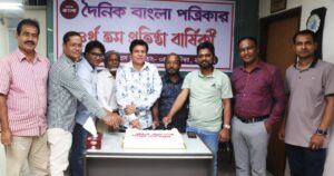 দৈনিক বাংলা পত্রিকার চতুর্থ প্রতিষ্ঠাবার্ষিকী উপলক্ষে নারায়ণগঞ্জে এক সাজানো ও আনন্দমুখর অনুষ্ঠানের আয়োজন করা হয়। অনুষ্ঠানের মূল আকর্ষণ ছিল উদযাপনের জন্য কেক কেটে দিনটি উদযাপন। এটি গতকাল বৃহস্পতিবার নারায়ণগঞ্জ প্রেসক্লাবের মিলনায়তনে অনুষ্ঠিত হয়। এ সময় উপস্থিত ছিলেন জেলা যুবদলের সদস্য সচিব মশিউর রহমান রনি, যিনি পত্রিকাটির প্রতিষ্ঠাবার্ষিকীতে শুভেচ্ছা ও অভিনন্দন জানিয়ে বলেন, সত্য ও বস্তুনিষ্ঠ সংবাদ পরিবেশনের মাধ্যমে দৈনিক বাংলা
